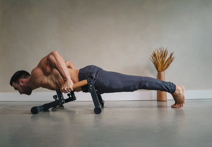 Configuración rápida en tres arreglos. Utiliza los Mini Bars como paralelas bajas, altas o inclinadas para adaptar cualquier ejercicio de suelo mientras reduces la tensión en tus muñecas.