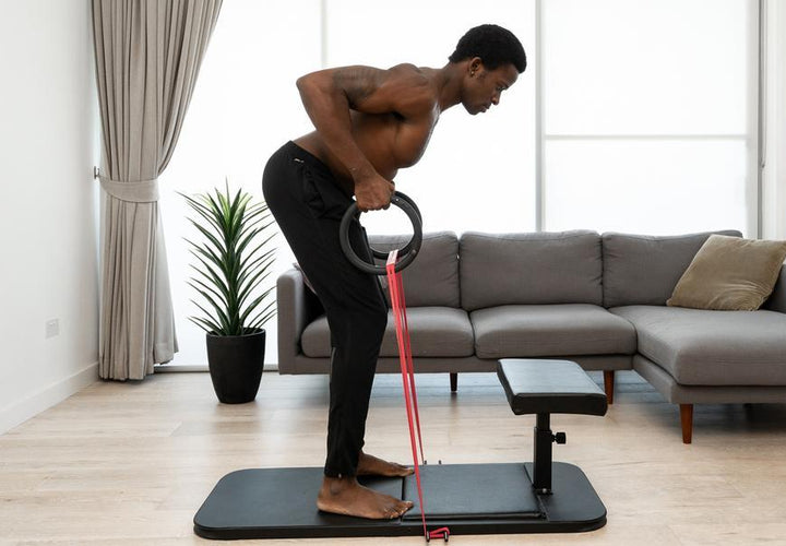 Activa tus estabilizadores con la configuración de anillas de gimnasia tradicional. Sujeta las anillas a correas de suspensión para realizar fondos, muscle-ups y ejercicios de L-sit.