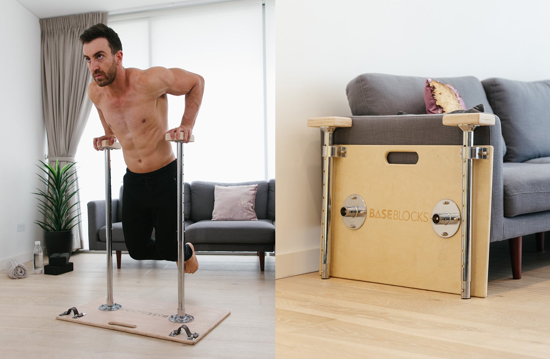 €199,00Conoce el BaseBlocks Trainer. Inspirado en los soportes para handstand, el BaseBlocks Trainer permite a los usuarios realizar ejercicios de push, pull, core y piernas utilizando solo su peso corporal. Los postes verticales son ajustables en altura y tienen inestabilidad multidireccional para replicar la inestabilidad de las anillas de gimnasia, desafiando tus estabilizadores con cada ejercicio. Realiza ejercicios como step-ups and push-ups en la altura más baja, y remo y fondos en la altura más alta. Se desliza debajo de tu cama o sofá para almacenamiento y se ensambla en segundos.