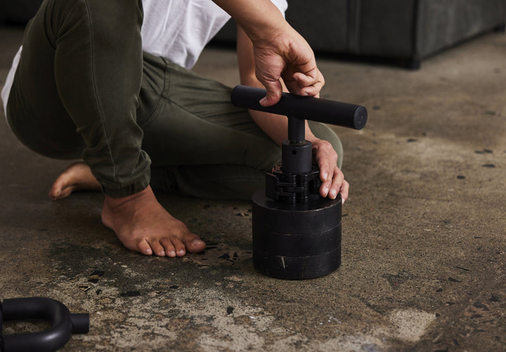 €65,00 Compare to The BaseBarEl BaseBell es una pesa rusa ajustable en peso y asas. Puedes realizar ejercicios con ambas manos con el asa en forma de T (como swings y squats) o ejercicios con una sola mano con el asa en forma de U (como press de hombros y remo). Asas de liberación rápida para una configuración fácil y un cierre de bloqueo rápido para asegurar el peso de forma segura. Las pesas no están incluidas con este producto.